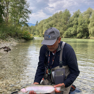 Nach einer erfolgreichen Lachssaison startete ich im Herbst mit meinen Gästen zu einer Tour durch Slowenien, Österreich und der Schweiz. Das Glück mit Wasserständen wie im Frühjahr war mir diesmal nicht hold und so verlief keine Tour wie ursprünglich geplant. Oft musste ich ausweichen, um meinen Gästen bessere Bedingungen bieten zu können. Durch meine Ortskenntnis und das gute Beziehungsnetz ergaben sich aber immer wieder Möglichkeiten. Als Guide wünscht man sich natürlich, dass die Teilnehmer optimale Grundlagen vorfinden. Die Natur aber hat sich in den letzten Jahren als sehr unberechenbar erwiesen. Man muss heute immer einen Plan B, wenn nicht sogar einen Plan C haben. Was mich bei allen 3 Gruppen besonders gefreut hat war ihr Verständnis für die teils besonderen Umstände und ihre Flexibilität für Kompromisse. Bei einer Gruppe ging es sogar so weit, dass wir eigentlich nach Tschechien wollten, aber schließlich in Slowenien landeten und nach 3 Tagen in Österreich an der Traun fischten. Auch Gewässer wie Seen, die ich sonst nicht so befische mussten herhalten. Was sich im Nachhinein als absoluter Glücksfall herausstellte. Das klare Wasser war aber auch eine Herausforderung in Sachen Präsentation, Drill mit Spitzen von 0,10 und Geduld beim Drill.