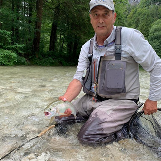 Die Savinja liess uns genau eine Stunde bei tollen Verhältnissen fischen. Nach 5 Würfen hatte ich schon meine erste schöne Regenbogenforelle und danach regnete es den ganzen Tag über nur noch in Strömen. Wasserfarbe Schokolade und reissend, so dass wir uns gegen 15:00 Uhr dem Kulinarischen zuwandten und dem Bier frönten. Den nächsten Tag verbrachten wir gezwungenermassen an der Sava, welche besser Wasserstände hatte, obwohl dies ein Fahrweg von mehr als einer Stunde bedeutete. Die Trophystrecken liessen wir aus und fischten im oberen Bereich, da das Wasser dort bereits eine viel bessere Qualität aufwies. Nebenflüsse wie die Treta brachten so viel Schmutz in den Fluss und dennoch gelang es uns einige Fische in den Kescher zu bringen. Der Wunsch von Friedhelm konnten wir natürlich auch realisieren und er wurde mit einer grösseren Aesche belohnt. Somit hat er seine Wunschliste komplett erfüllt und er kann sich bereits neue Ziele setzen für die nächste Tour.